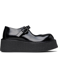 Buffed leather Mary Jane-style loafers in black. · Pin-buckle strap at vamp · Crepe-rubber platform sole · Platform: H2" Supplier color: Black Upper: leather. Sole: rubber. Made in Italy 251720F121011