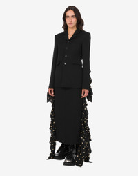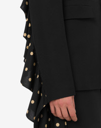 THE FALL/WINTER 2025 COLLECTION FEATURES THE WOOL-BLEND DIAGONAL JACKET WITH COTTON POPLIN RUFFLES IN AN ALL OVER POLKA DOT PRINT. PRODUCT DETAILS REGULAR FIT - THREE FRONT POCKETS - PADDED SHOULDER STRAPS - BUTTON FRONT CLOSURE - LINED FABRIC: 60% PURE WOOL, 40% VISCOSE - LINING: 60% CELLULOSE ACETATE, 40% CUPRO SKU: AEF252D A050454371555