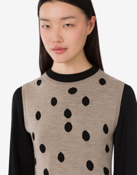 THE FALL/WINTER 2025 COLLECTION FEATURES THE WOOL AND CASHMERE BLEND PULLOVER WITH POLKA DOTS EFFECT NOTCHES. PRODUCT DETAILS REGULAR FIT - CREW NECK - THREE-QUARTER SLEEVES FABRIC: 36% WOOL, 32% POLYAMIDE, 27% VISCOSE, 5% CASHMERE SKU: AEF252D J091754031555