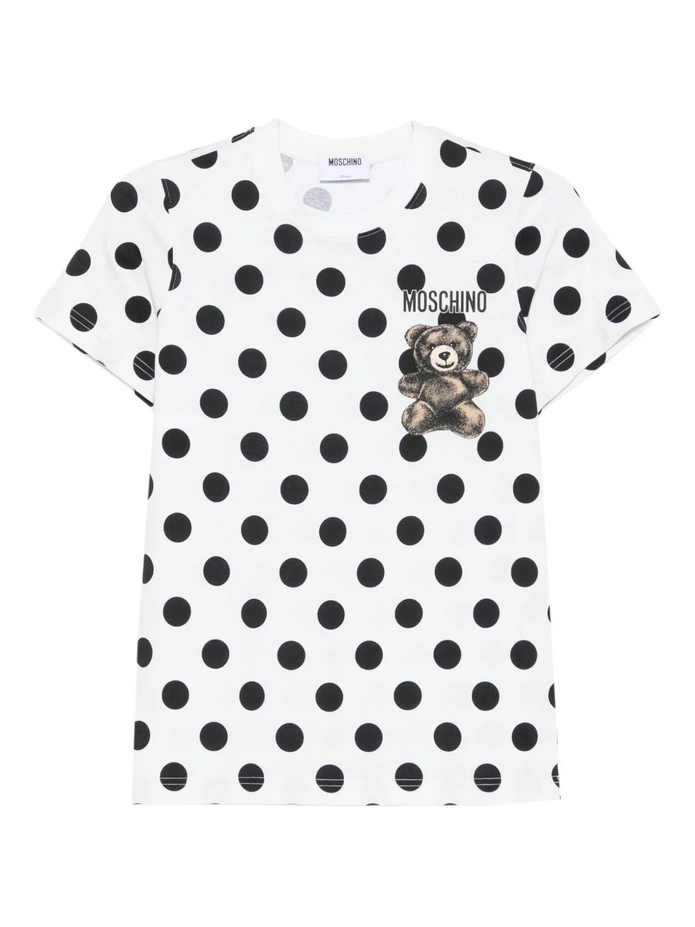 polka-dot teddy-print T-shirt Highlights - Off-white - Polka dot pattern - Short sleeves - Crew neck - Teddy bear print - Graphic design Imported Composition Fabric 100% SIZE & FIT Model measurements Height 5 ft 9 in(1.75 m) Bust/Chest 34.64 in(88 cm) Hips 36.61 in(93 cm) Waist 26.37 in(67 cm) Washing instructions Read Manufacturer Guidelines