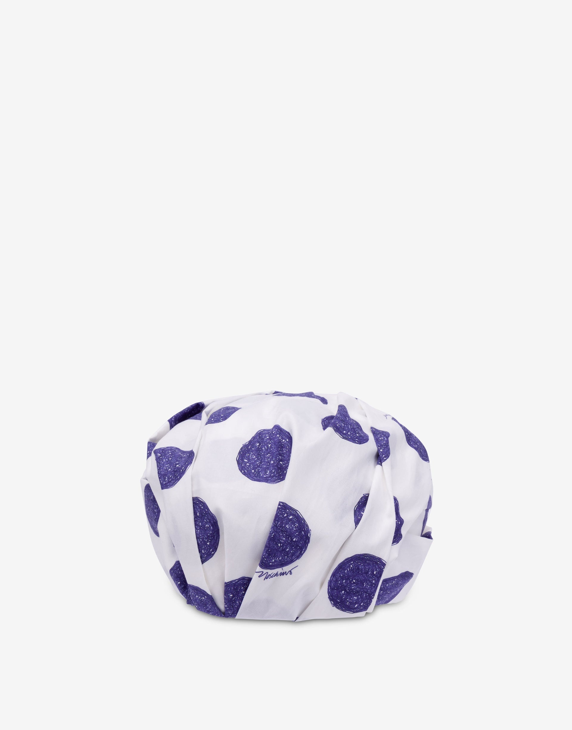 COTTON TURBAN HAT WITH POLKA DOT PRINT EFFECT DRAWING WITH BIROS. PRODUCT DETAILS - PRINTED ALL OVER - LINED FABRIC: 90% COTTON, 10% POLYESTER SKU: AEF251D A360104501002