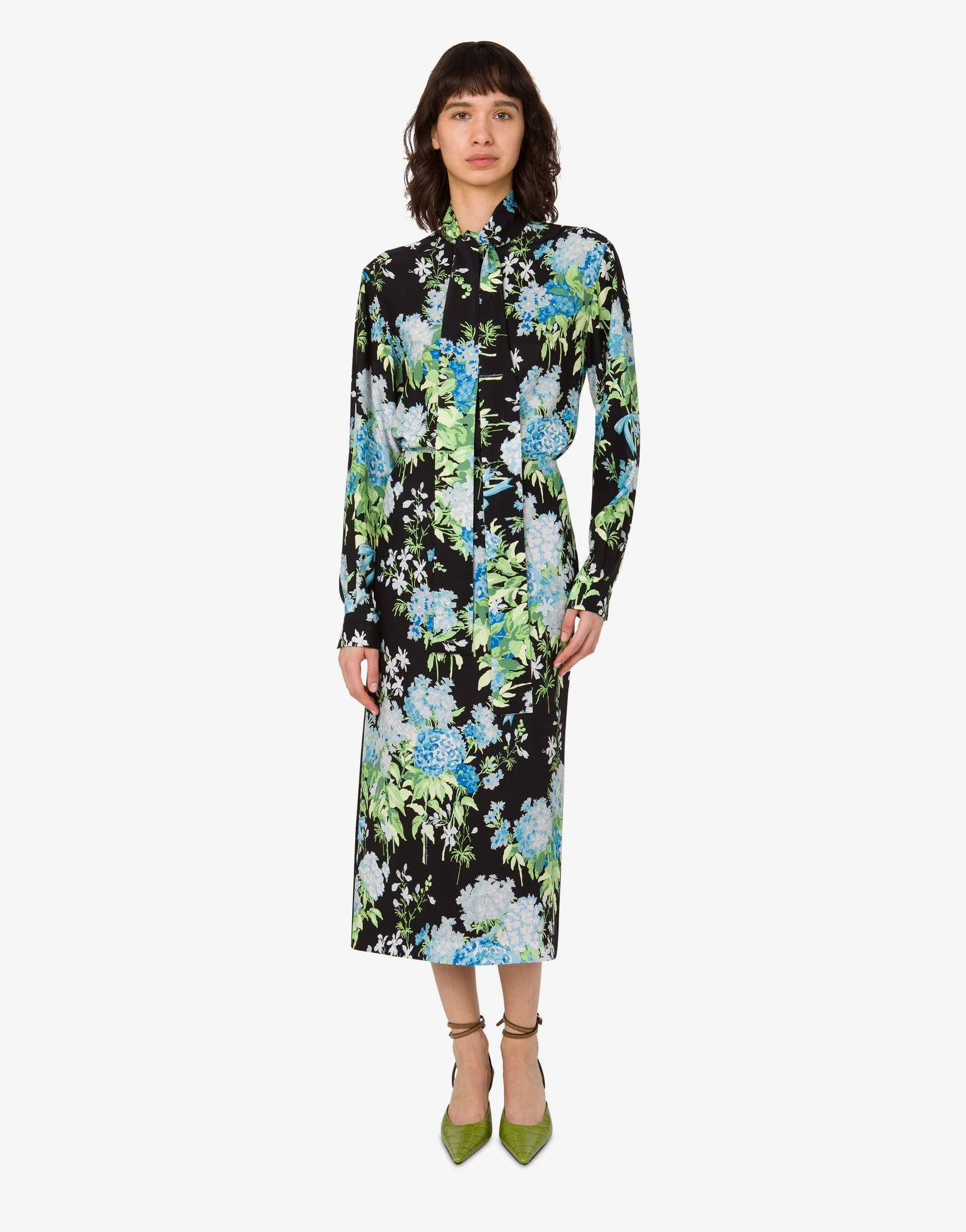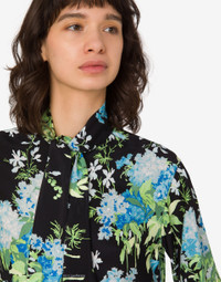 THE FALL/WINTER 2025 PRE-COLLECTION FEATURES THE SILK OPAQUE SATIN SHIRT WITH LAVALLIERE COLLAR AND ALL OVER FLOWER PRINT, MADE IN COLLABORATION WITH THE BRITISH TEXTILE HOUSE SANDERSON. PRODUCT DETAILS RELAXED FIT - BOW TIE COLLAR - LONG SLEEVES - BUTTON CUFFS - BUTTON FRONT CLOSURE FABRIC: 100% SILK SKU: AEF252E V022955581555 FITTING & DIMENSIONS - MODEL HEIGHT: 177 CM - MODEL BUST: 81 CM - MODEL WAIST: 63 CM - MODEL HIPS: 92 CM - MODEL SIZE: 40