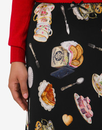 THE FALL/WINTER 2025 PRE-COLLECTION FEATURES THE SILK MATTE SATIN SKIRT WITH ALL OVER TEA PRINT. PRODUCT DETAILS A-LINE FIT - REGULAR WAIST - SMALL BOW AT FRONT - ELASTIC WAIST - ZIG ZAG EMBROIDERY AT WAIST - LACE EMBROIDERY AT BOTTOM FABRIC: 100% SILK SKU: AEF252E A012955591555 FITTING & DIMENSIONS - MODEL HEIGHT: 177 CM - MODEL BUST: 81 CM - MODEL WAIST: 63 CM - MODEL HIPS: 92 CM - MODEL SIZE: 40