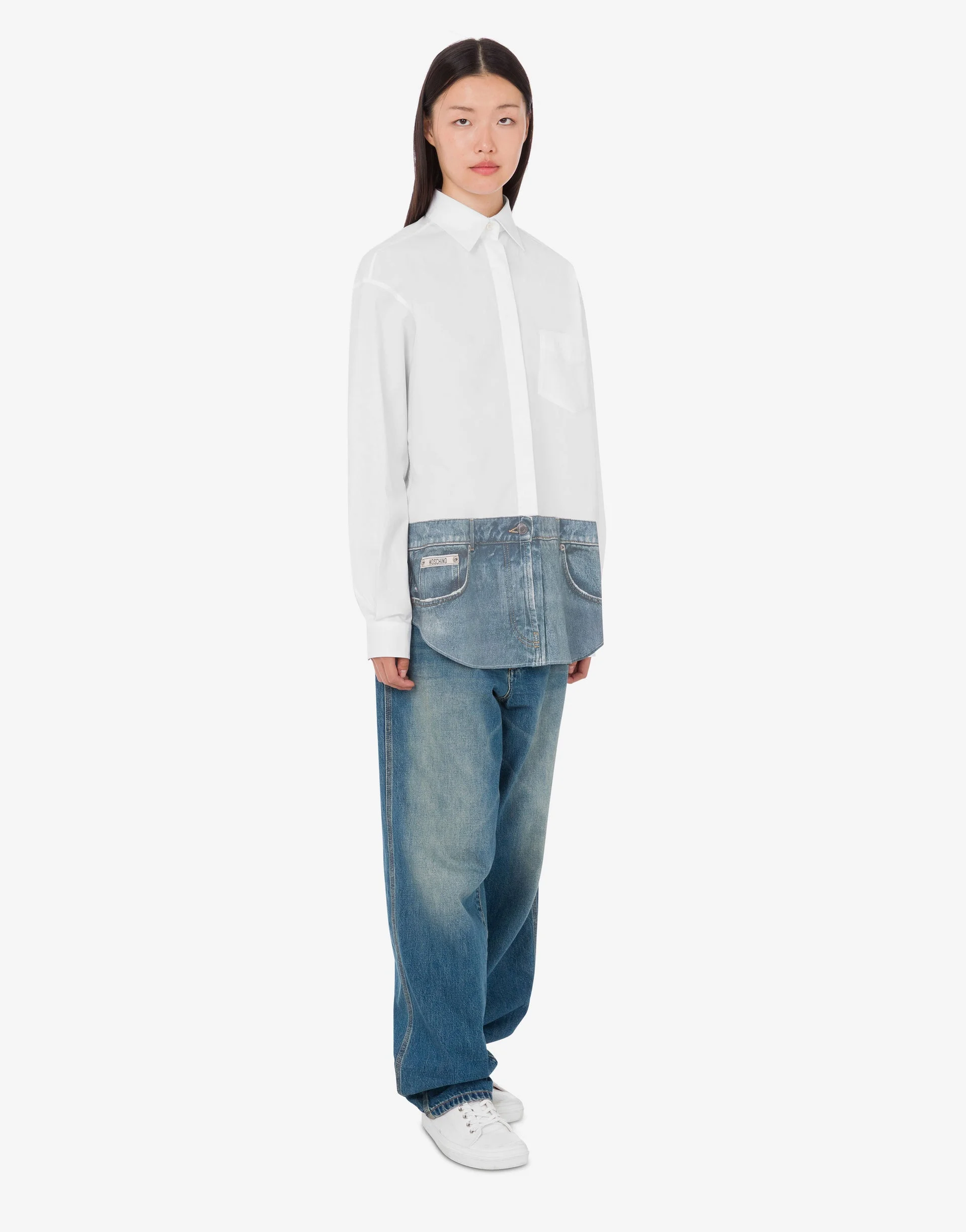 THE RESORT 2026 COLLECTION FEATURES THE STRETCH COTTON POPLIN SHIRT WITH A DENIM PRINT WITH A TROMPE-L'ŒIL EFFECT ON THE BOTTOM. PRODUCT DETAILS RELAXED FIT - TROMPE-L'ŒIL EFFECT PRINT - POCKET ON FRONT - LONG SLEEVES - BUTTONED CUFFS FABRIC: 94% COTTON, 6% ELASTAN SKU: AEF261E A021805311001