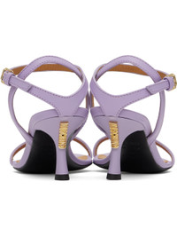 Buffed calfskin heeled sandals in purple. · Straps at vamp · Pin-buckle ankle strap · Logo hardware at heel · Logo patch at padded leather footbed · Covered kitten heel with rubber injection · Polished leather sole · Heel: H2.5" Supplier color: Lilac Upper: calfskin. Sole: leather, rubber. Made in Italy 251720F125004