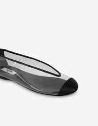 THE RESORT 2026 COLLECTION FEATURES PVC BALLET FLATS WITH ROUNDED TOE, EGG NECKLINE AND SATIN DETAILS. PRODUCT DETAILS - SATIN PIPING - SATIN SOLE - SATIN-COVERED FLAT HEEL - LEATHER SOLE UPPER: 90% POLYVINYL CHLORIDE, 8% VISCOSE, 2% SILK - BOTTOM: 100% CALFSKIN - LINING: 70% VISCOSE, 20% SILK, 10% GOATSKIN SKU: POLMA11030C1OM6199A