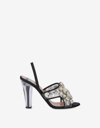 PVC sandals with jewel stone decoration and transparent chunky heel. - Transparent PVC band - Decoration with jewel stones - Leather insole - Leather sole Bottom:100% Calfskin Lining:100% Goatskin Upper:1% Polyester, 4% Polyurethane, 95% Polyvinyl chloride Code: POLMA1635AC0IMZ199B FIT - Heel Height : 10 cm