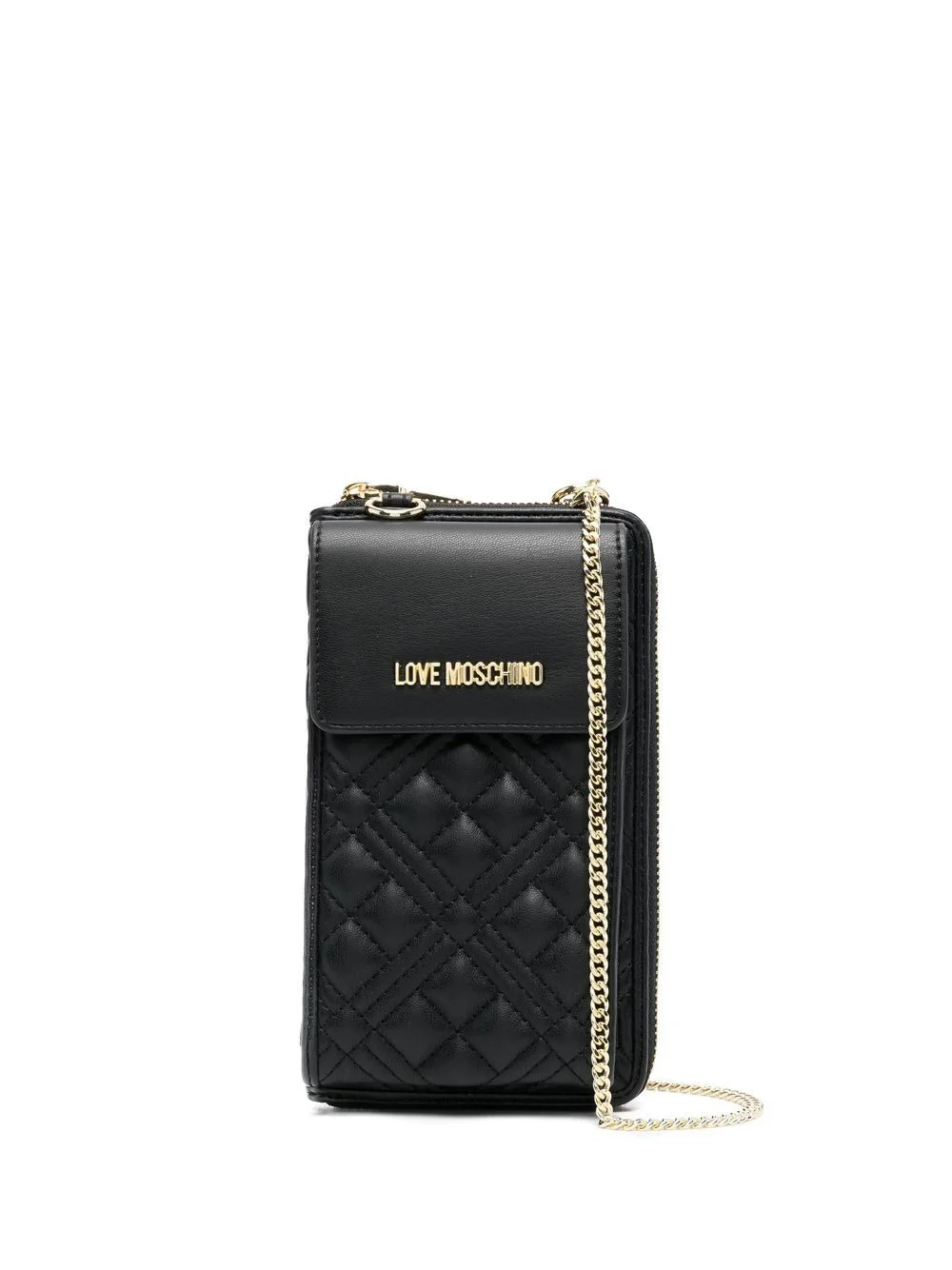 quilted chain-strap wallet black faux leather diamond quilting gold-tone logo plaque chain-link shoulder strap all-around zip fastening internal card slots internal zip-fastening pocket Imported Composition Outer: Polyurethane 100% SIZE & FIT Measurement DEPTH 0.78 in(2 cm) LENGTH 7.48 in(19 cm) WIDTH 4.33 in(11 cm) STRAP 21.65 in(55 cm)
