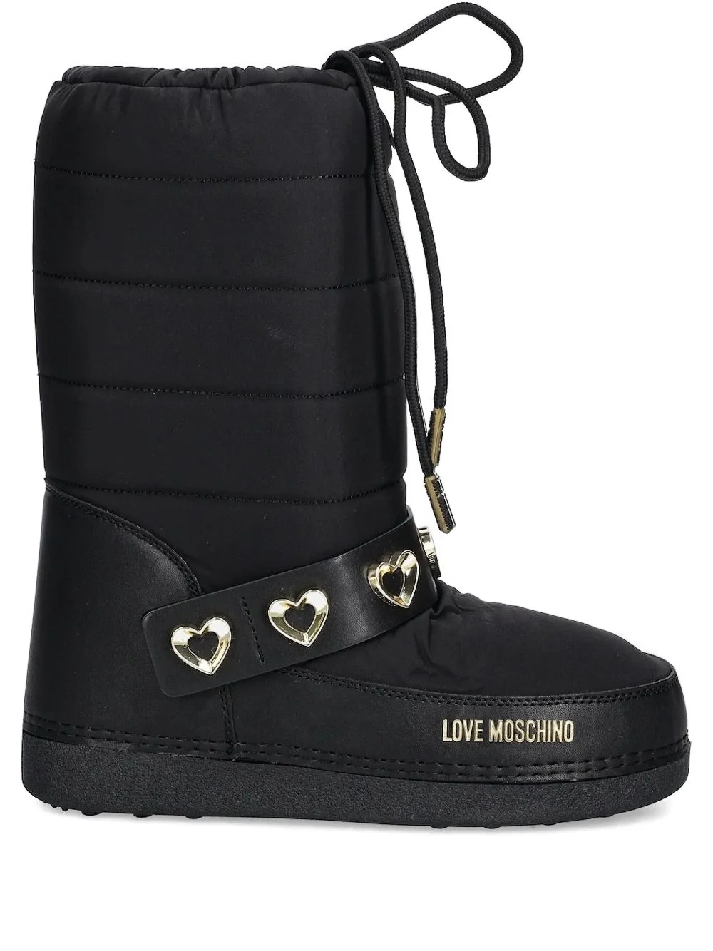 quilted heart boots Highlights - Black - Heart-shaped embellishments - Drawstring fastening - Round toe Imported Composition Lining: Fabric 100% Outer: Calf Leather 100%, Fabric 100% Sole: Rubber 100%