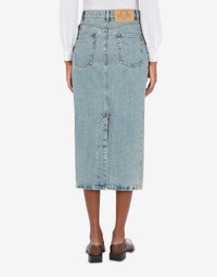 STRAIGHT MIDI SKIRT IN BLUE COTTON DENIM WITH DECORATIVE METAL RIVETS. THE BACK IS PERSONALIZED WITH THE LAUREL CROWN ARCHIVAL LOGO PATCH. REGULAR FIT LOGO PRINT WITH LAUREL WREATH REGULAR WAIST THREE FRONT POCKETS BELT LOOPS AT THE WAIST TWO BACK POCKETS BACK SLIT CONCEALED ZIP AND BUTTON CLOSURE FABRIC: 100% COTTON CODE: AEF242D 011854220349