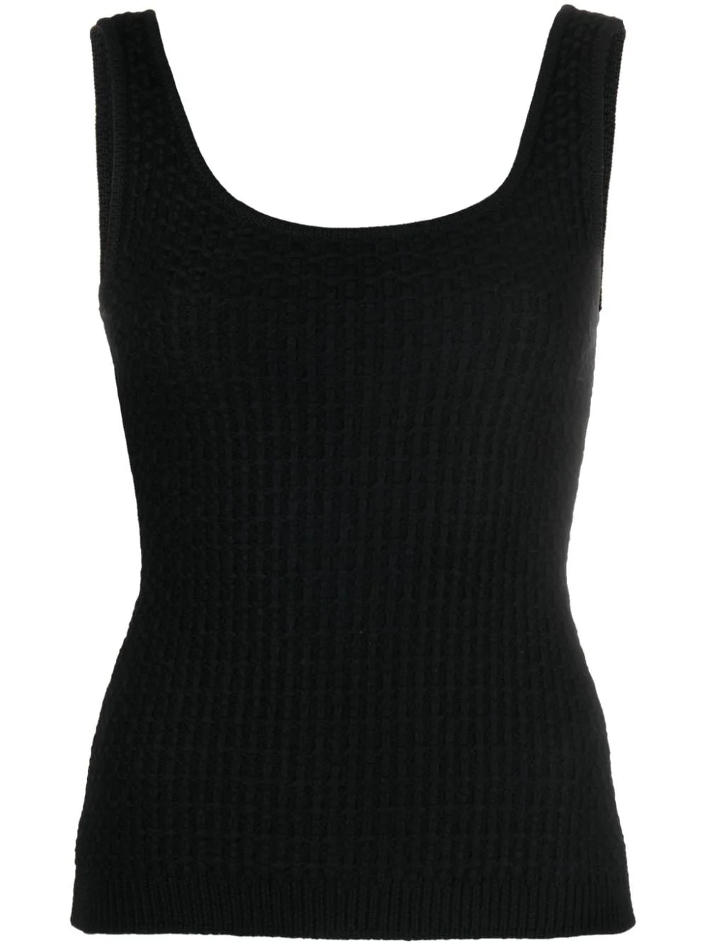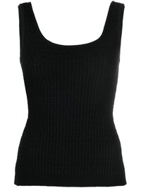 round-neck virgin wool top Highlights - Black - Virgin wool - Waffle knit - Round neck - Sleeveless - Ribbed hem - Straight hem Made in Italy Composition Virgin Wool 100% SIZE & FIT Model measurements Height 5 ft 9 in(1.76 m) Bust/Chest 31.88 in(81 cm) Hips 35.43 in(90 cm) Waist 24.8 in(63 cm) FittingInformation Designed for a slim fit that sits just away from the body offering a close yet comfortable fit Made from a midweight non-stretch fabric, this piece offers minimal elasticity when worn Washing instructions Hand Wash