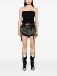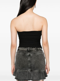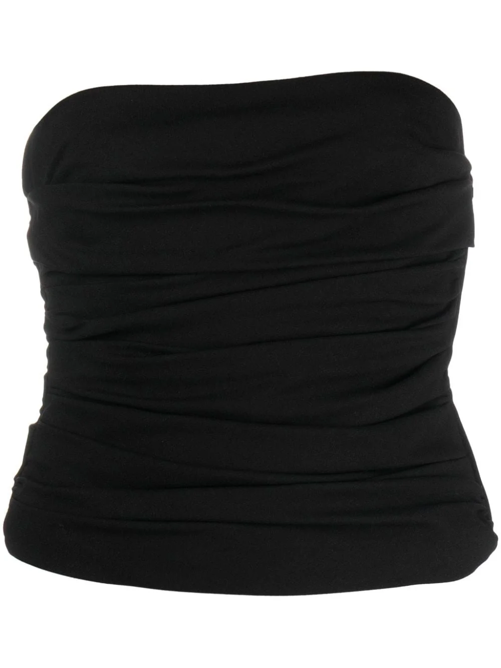 ruched bandeau top Highlights - Black - Ruched bodice - Bandeau style - Strapless - Straight hem Imported Composition Outer: Acetate 82%, Viscose 18% Lining: Acetate 66%, Polyester 34% SIZE & FIT Model measurements Height 5 ft 9 in(1.75 m) Bust/Chest 32.67 in(83 cm) Hips 38.58 in(98 cm) Waist 26.77 in(68 cm) FittingInformation Designed for a slim fit that sits just away from the body offering a close yet comfortable fit Made from a midweight non-stretch fabric This piece fits true to size – take your usual size