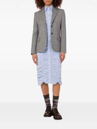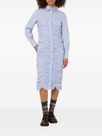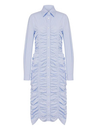 ruched button-down midi dress Highlights - Light blue - Front button fastening - Ruched detailing - Long sleeves - Pointed collar Imported Composition Cotton 94%, Elastane 6% SIZE & FIT FittingInformation Designed for a slim fit that sits just away from the body offering a close yet comfortable fit Made from a midweight stretch fabric, this piece offers elasticity and flexibility when worn Washing instructions Dry Clean Only