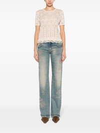 ruffle-hem pointelle-knit top Highlights - Beige - Cotton - Organza panel - Pointelle knit - Semi-sheer construction - Crew neck - Short sleeves - Ruffle hem Made in Italy Composition Cotton 100% SIZE & FIT Model measurements Height 5 ft 11 in(1.8 m) Bust/Chest 33.07 in(84 cm) Hips 37 in(94 cm) Waist 25.59 in(65 cm) FittingInformation Designed for a slim fit that sits just away from the body offering a close yet comfortable fit Made with a midweight knit, this piece offers some stretch This piece fits true to size – take your usual size Washing instructions Dry Clean Only