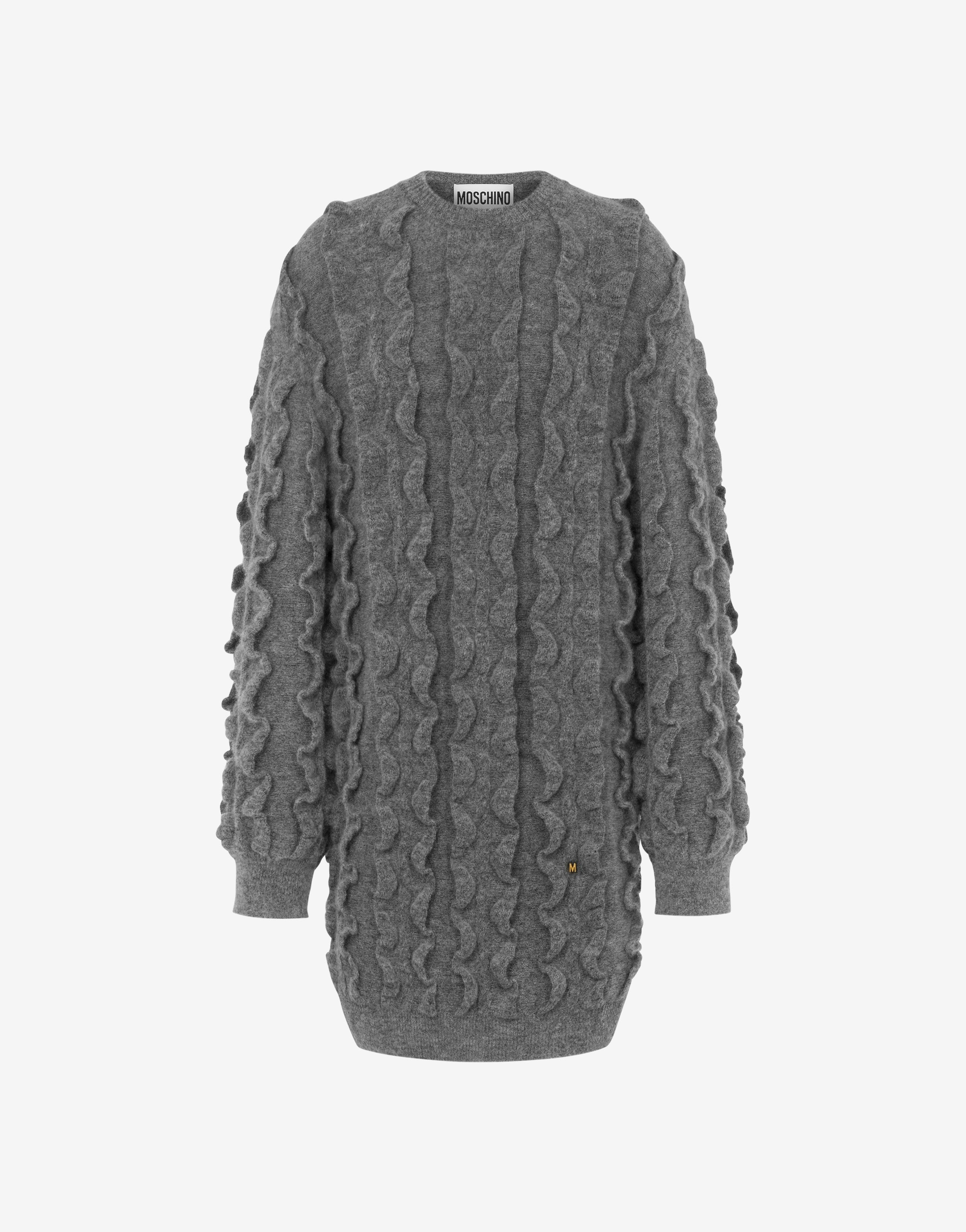 STRETCH MOHAIR DRESS WITH RUCHING EFFECT AND SMALL LETTER M IN GOLD GALVANIC EMBROIDERED ON THE FRONT. OVERSIZE FIT SMALL METAL M ON THE FRONT CREW NECK LONG SLEEVES FABRIC: 1% ELASTAN, 31% MOHAIR, 38% POLYAMIDE, 30% PURE WOOL CODE: AEF242D 048954040505