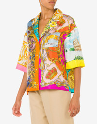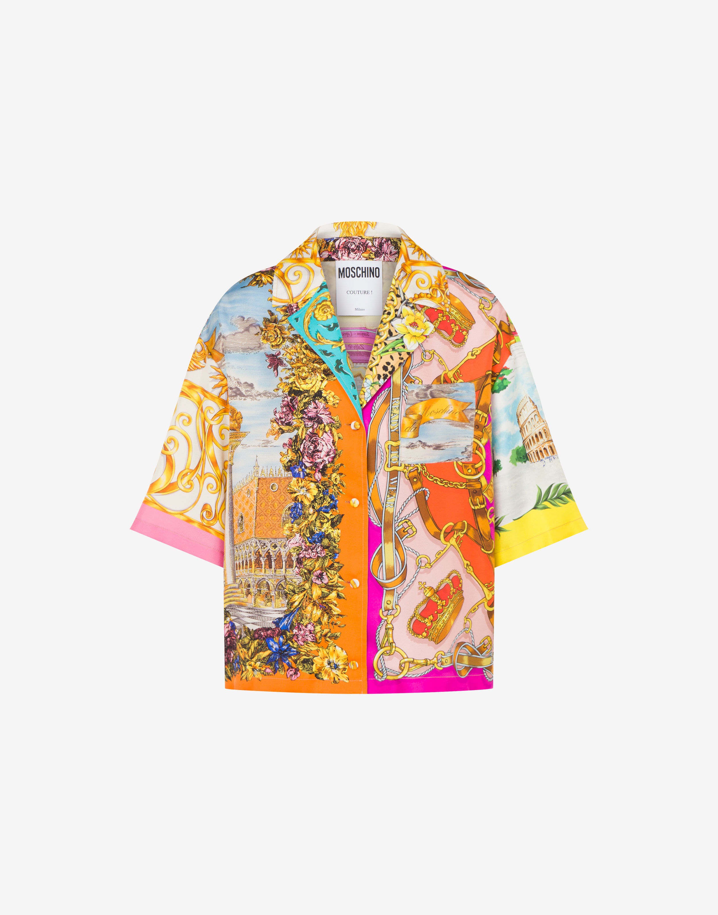Silk twill shirt with scarf print. - Loose fit - Short sleeves - Dropped shoulders - Front pocket - Front button fastening Fabric:100% Silk Lining:60% Cellulose acetate, 40% Cupro Code: AEF241E 020305511888 FIT - Loose fit - Model bust size : 82 - Model height : 1.78 cm - Model Hips : 88 cm - Model size : 40 - Model waist : 60 cm