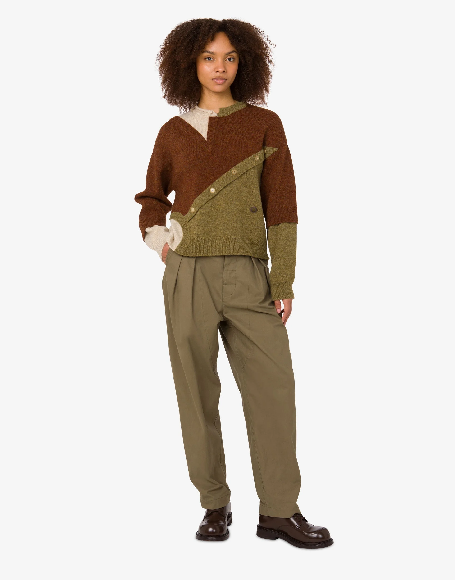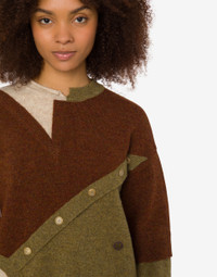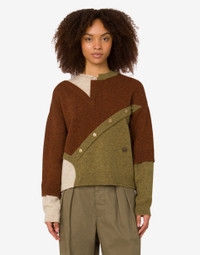 THE FALL/WINTER 2025 PRE-COLLECTION FEATURES THE PULLOVER MADE WITH SHETLAND WOOL PATCHWORK, DECORATIVE BUTTONS AND SMALL LEATHER DETAIL WITH EMBROIDERED LETTER M. PRODUCT DETAILS RELAXED FIT - GIROCOLLO - SHOULDERS DROPPED FABRIC: 100% PURE WOOL SKU: AEF252E A091755031888 FITTING & DIMENSIONS - MODEL HEIGHT: 177 CM - MODEL BUST: 81 CM - MODEL WAIST: 63 CM - MODEL HIPS: 92 CM - MODEL SIZE: 40