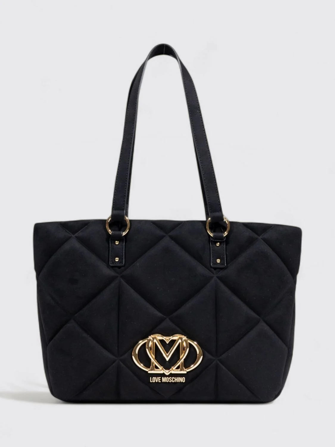 DESCRIPTION - Style: Sporty - Logo: Metallic - Model: Tote - Closure: With zip - Shape: Rectangular - Handle: Top - Materials: Velvet - Pattern: Logo DETAILS AND CARE Composition AF 100 SIZE AND FIT Sizes not available Designer code: JC4312PP0NKE0 000 Giglio Code: H45382 Designer: Love Moschino Collection: Love Moschino Woman Category: Bags Love Moschino