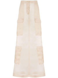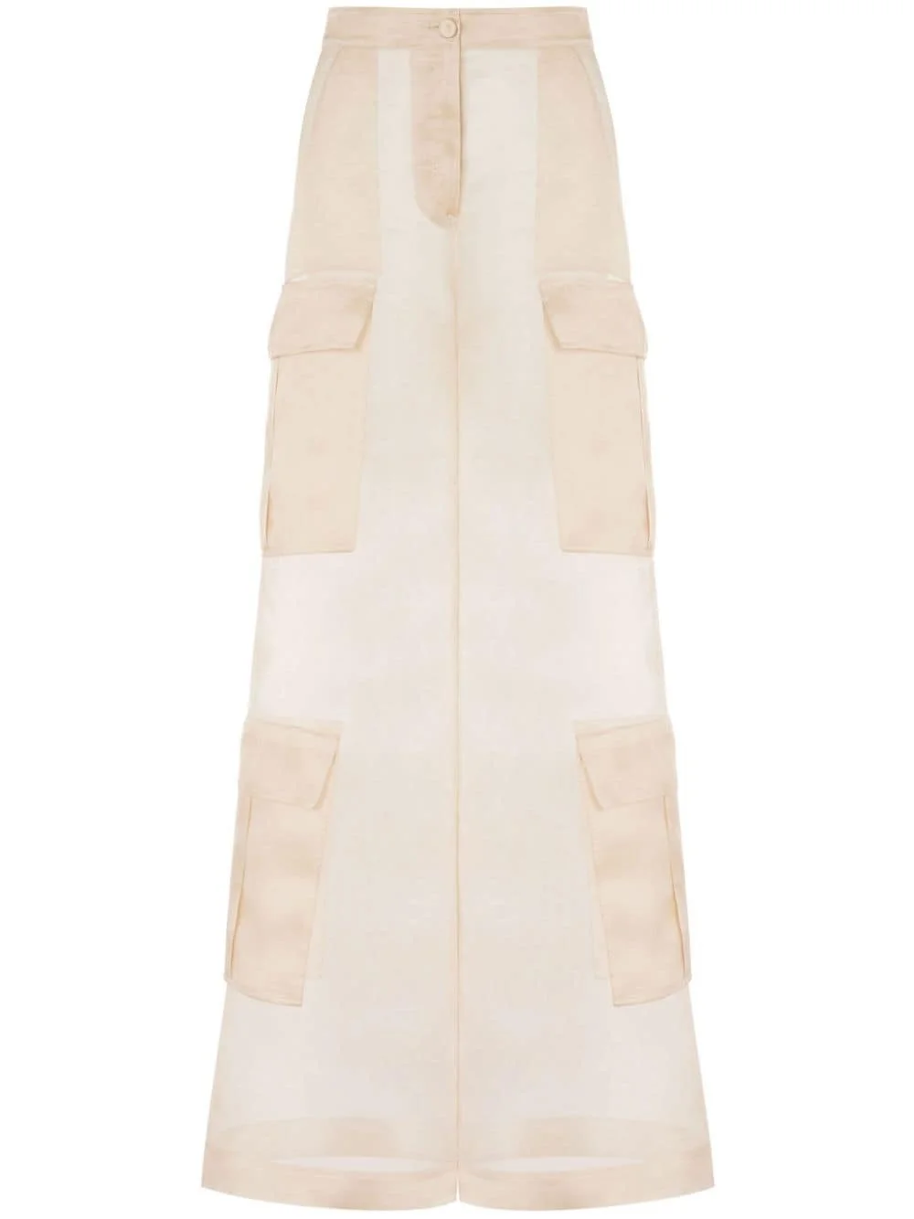 silk wide-leg trousers Highlights - Beige - Silk - Organza - Semi-sheer construction - High-waisted - Front button and zip fastening - Multiple cargo pockets - Wide leg Made in Italy Composition Silk 100%