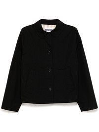 single-breasted jacket Highlights - Black - Front button fastening - Two front welt pockets - Spread collar - Full lining Made in Italy Composition Outer: Cotton 75%, Polyamide 25% Lining: Polyester 100% SIZE & FIT Model measurements Height 5 ft 10 in(1.77 m) Bust/Chest 31.49 in(80 cm) Hips 35.43 in(90 cm) Waist 25.19 in(64 cm) FittingInformation Designed to be unstructured, offering a loose fit throughout Made from a midweight non-stretch fabric Washing instructions Dry Clean Only
