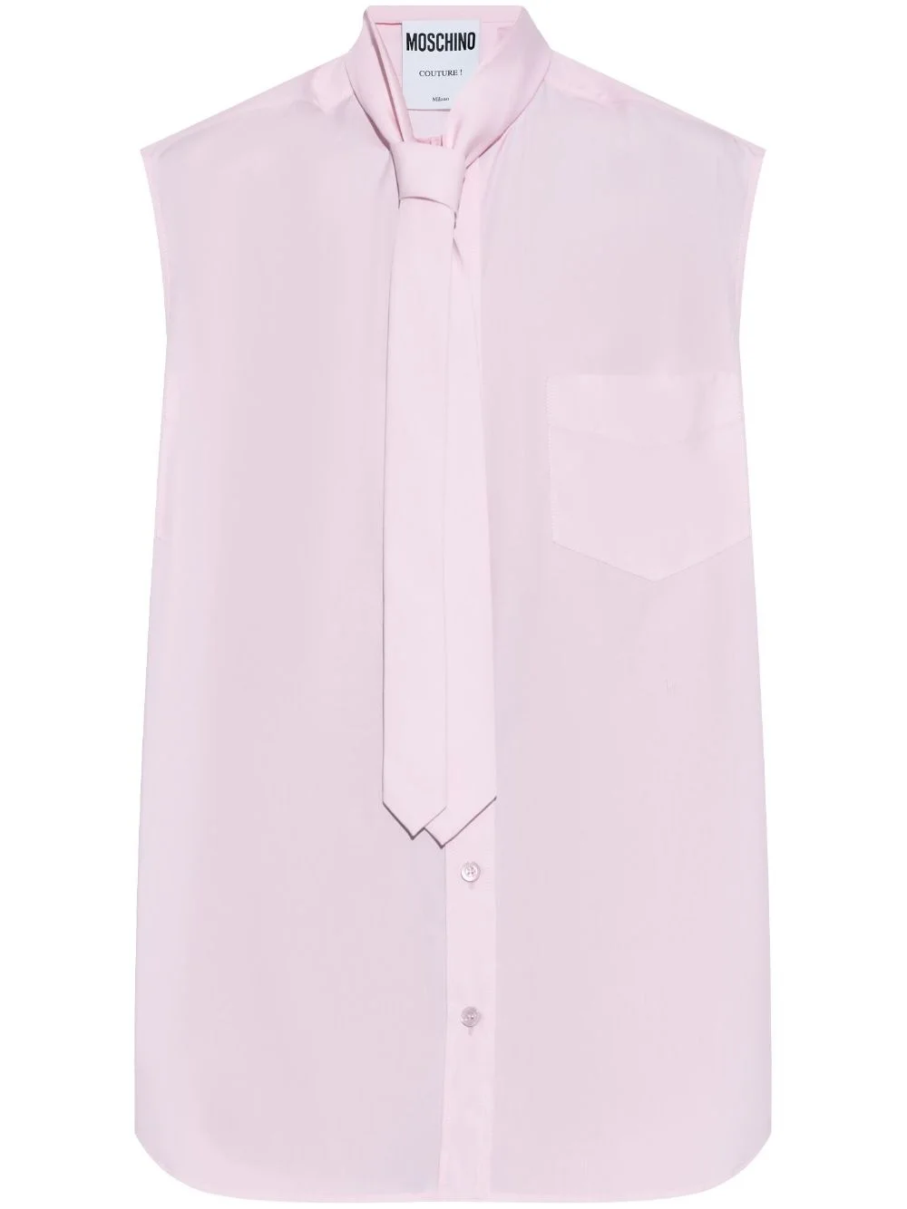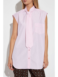 sleveless cotton shirt Highlights - Light pink - Cotton - Front button fastening - Tie neck - Sleeveless - Chest patch pocket - Curved hem Made in Italy Composition Cotton 100% SIZE & FIT FittingInformation Designed to be unstructured, offering a loose fit throughout Made from a midweight non-stretch fabric