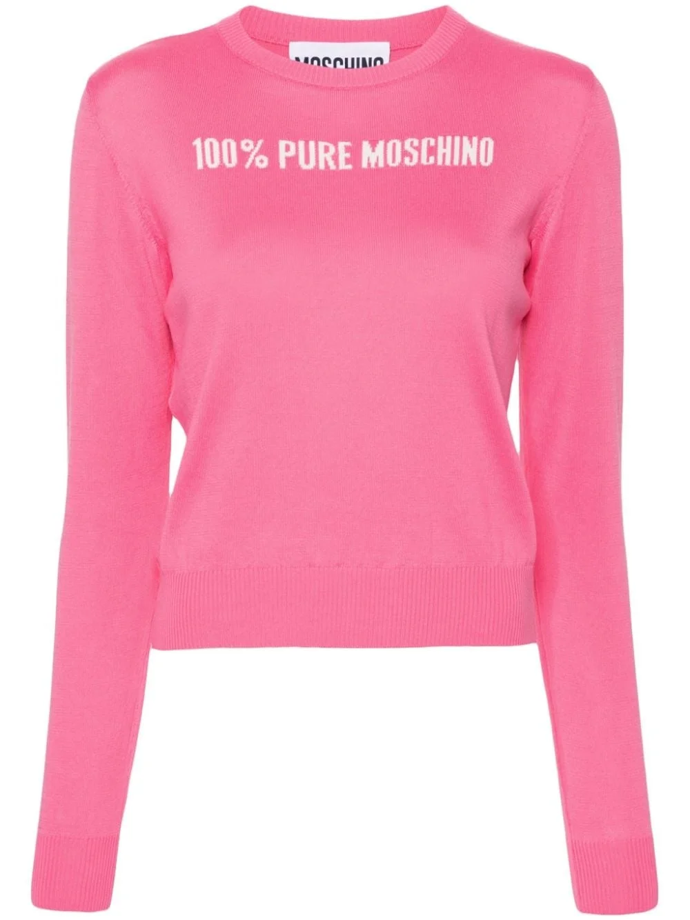 slogan intarsia-knit jumper Highlights - Pink/white - Cotton - Knitted construction - Intarsia knit - Slogan to the front - Crew neck - Long sleeves - Ribbed cuffs and hem - Straight hem Made in Italy Composition Cotton 100% SIZE & FIT Model measurements Height 5 ft 10 in(1.78 m) Bust/Chest 29.92 in(76 cm) Hips 34.64 in(88 cm) Waist 23.62 in(60 cm) FittingInformation Designed for a slim fit that sits just away from the body offering a close yet comfortable fit Made with a midweight knit, this piece offers some stretch This piece fits true to size – take your usual size Washing instructions Dry Clean Only