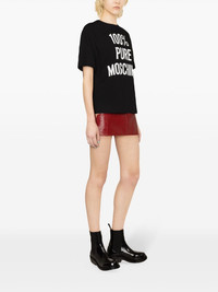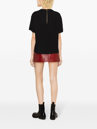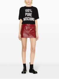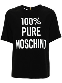 slogan-print T-shirt Highlights - Black - Crepe texture - Slogan print - Round neck - Short rear zip fastening - Short sleeves - Straight hem Made in Italy Composition Acetate 70%, Viscose 30% SIZE & FIT Model measurements Height 5 ft 10 in(1.79 m) Bust/Chest 31.49 in(80 cm) Hips 35.03 in(89 cm) Waist 23.62 in(60 cm) FittingInformation Designed for a relaxed fit, this piece allows for comfort and movement when worn Made from a midweight non-stretch fabric, this piece offers minimal elasticity when worn This piece fits true to size – take your usual size Washing instructions Hand Wash