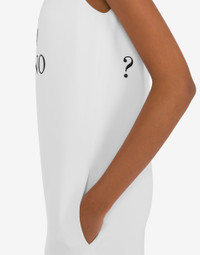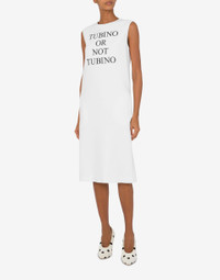 LONGUETTE DRESS IN STRETCH CREPE WITH CONTRASTING 'TUBINO OR NOT TUBINO' EMBROIDERY. THE STRAIGHT CUT AND CENTRAL BACK SLIT ALLOW FOR A MORE COMFORTABLE FIT. PRODUCT DETAILS REGULAR FIT - CREW NECKLINE - SLEEVELESS - TWO SIDE POCKETS - BACK ZIP CLOSURE - CENTER BACK SLIT - LINED FABRIC: 94% VISCOSE, 6% ELASTAN SKU: AEF251D J040704241001 FITTING & DIMENSIONS - MODEL HEIGHT: 180 CM - MODEL BUST: 80 CM - MODEL WAIST: 60 CM - MODEL HIPS: 89 CM - MODEL SIZE: 40