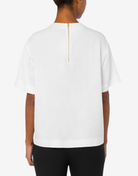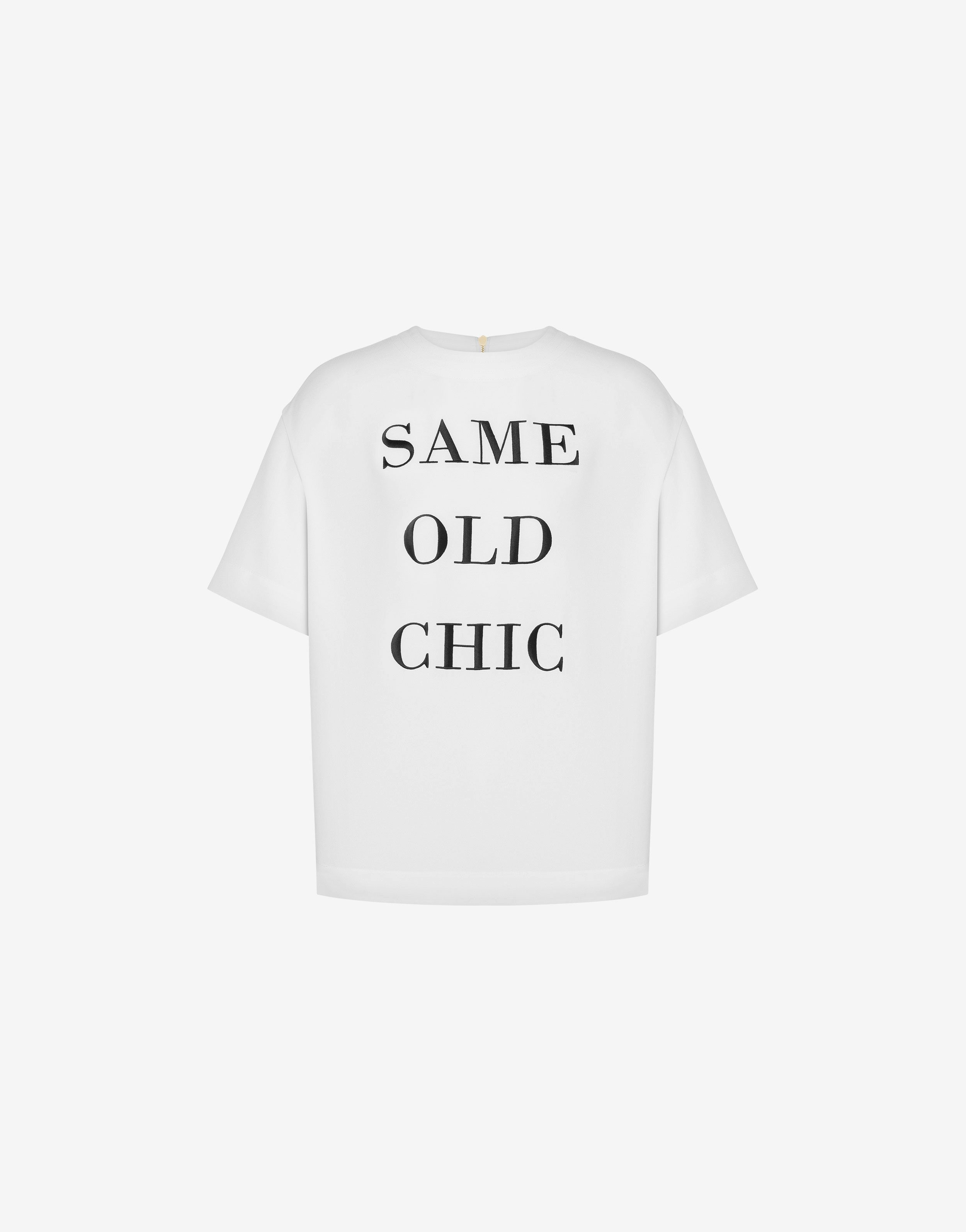 ENVERS SATIN BLOUSE WITH SAME OLD CHIC SLOGAN EMBROIDERY ON THE FRONT AND GOLD-PLATED ZIP ON THE BACK. RELAXED FIT CREW NECK SHORT SLEEVES CONTRASTING EMBROIDERY PARTIAL ZIP FASTENING AT THE BACK FABRIC: 70% CELLULOSE ACETATE, 30% VISCOSE CODE: AEF242E 020155331001