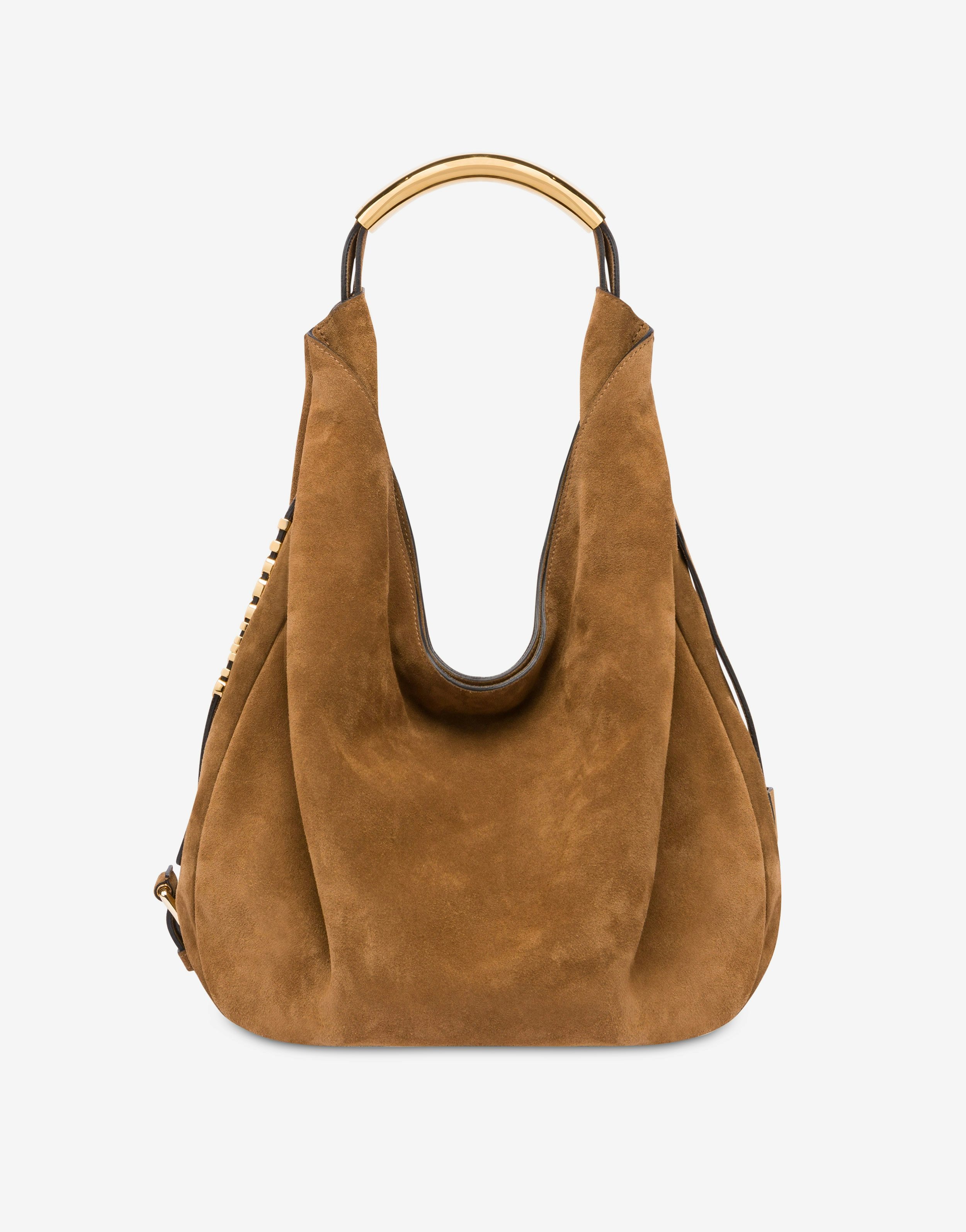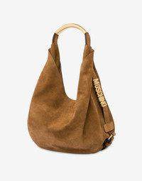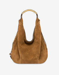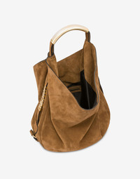 SUEDE HOBO BAG, SOFT AND VERY LIGHT. THE TUBULAR METAL HANDLE CREATES A UNIQUE AND CAPTIVATING DESIGN OF REFINED ELEGANCE. THE TWO ADJUSTABLE BELTS THAT WRAP AROUND THE BAG ARE ENHANCED BY THE LETTERING LOGO, DELICATELY WOVEN INTO THE DESIGN. MEDIUM SIZE LETTERING LOGO CREATED WITH METAL PASSING LETTERS HANDLE EMBELLISHED WITH SIDE ENGRAVINGS HIDDEN MAGNET CLOSURE LINED INTERIOR WITH ZIP POCKET AND SMALL APPLIED POCKET FABRIC: 100% CALFSKIN CODE: AEF2422 759280330089 FIT DEPTH: 8 CM HEIGHT: 16 CM WIDTH: 22.5 CM