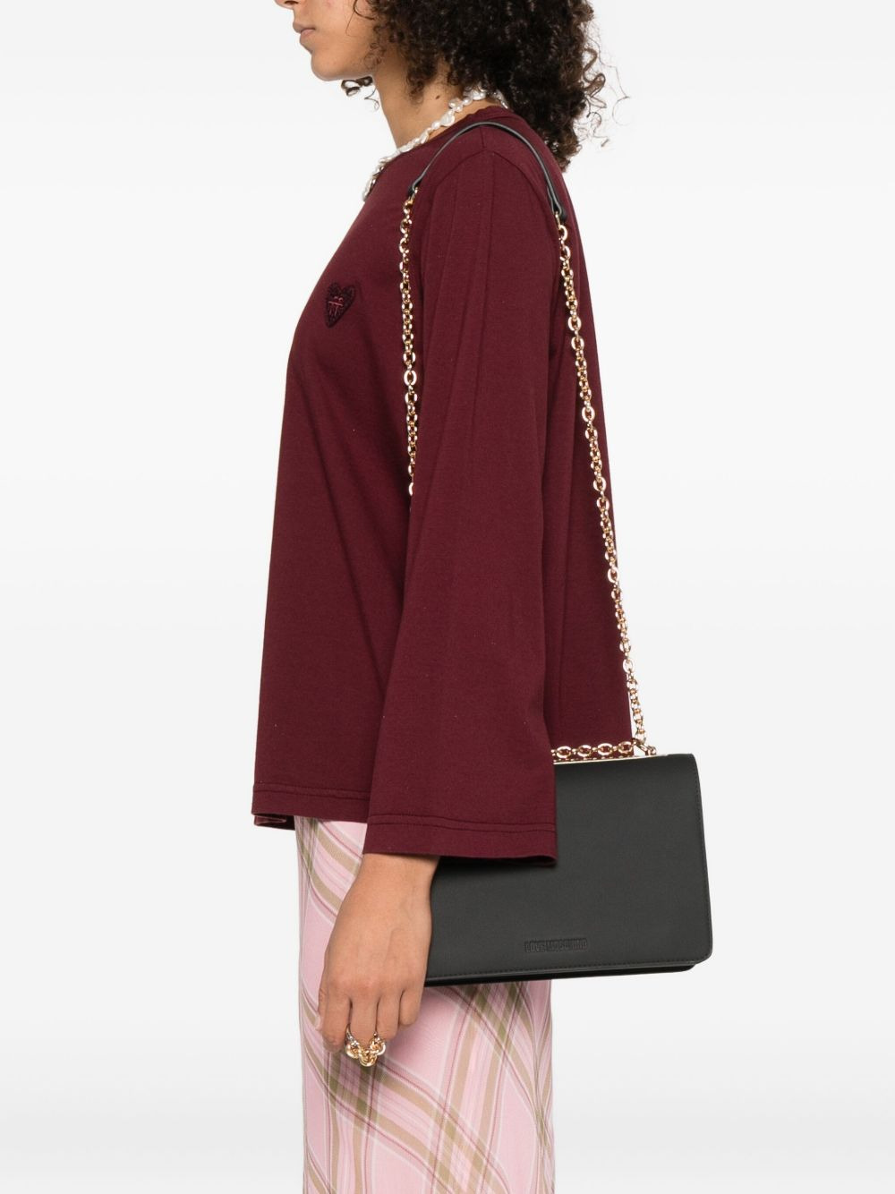 small logo-plaque shoulder bag Highlights - Black - Gold-tone logo plaque - Chain strap - Flap closure Imported Composition Outer: Calf Leather 70%, Polyurethane 30% SIZE & FIT Model measurements Height 5 ft 10 in(1.79 m) Bust/Chest 31.88 in(81 cm) Hips 35.43 in(90 cm) Waist 23.62 in(60 cm) Measurement DEPTH 3.14 in(8 cm) HEIGHT 6.29 in(16 cm) STRAP 20.07 in(51 cm) WIDTH 9.05 in(23 cm)