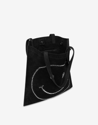 THE FALL/WINTER 2025 PRE-COLLECTION PRESENTS THE SUEDE TOTE BAG WITH SMILEY® MADE WITH SILVER-PLATED STUDS. PRODUCT DETAILS - MADE IN COLLABORATION WITH SMILEY® - METAL STUDS - DOUBLE HANDLES FOR SHOULDER CARRY - REMOVABLE LOGO CHARM - MAGNETIC CLOSURE - LINED INTERIOR WITH ZIP POCKET AND SMALL PATCH POCKET UPPER: 100% CALFSKIN - LINING: 100% COTTON SKU: POLMC4040PP1NOF000B FITTING & DIMENSIONS - DEPTH: 1 CM - WIDTH: 38 CM - HEIGHT: 42 CM