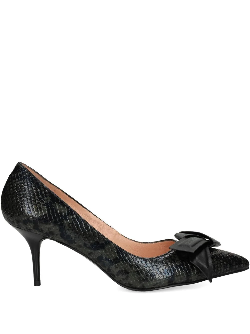 snakeskin bow pumps Highlights - Black - Snakeskin effect - Pointed toe - Kitten heel - Fabric bow - Leather upper Made in Italy Composition Front: Leather 100% Lining: Calf Leather 100% Sole: Calf Leather 100%