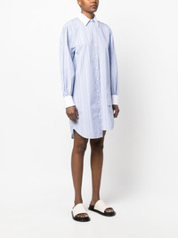 striped asymmetric shirt dress Highlights - Blue/white - Cotton - Stripe print - Contrasting border - Classic collar - Front button fastening - Upside-down front patch pocket - Long sleeves - Buttoned cuffs - Asymmetric hem - Above-knee length Made in Italy Composition Cotton 100% SIZE & FIT Model measurements Height 5 ft 11 in(1.8 m) Bust/Chest 31.49 in(80 cm) Hips 36.61 in(93 cm) Waist 24.4 in(62 cm) FittingInformation Designed to be unstructured, offering a loose fit throughout Made from a midweight non-stretch fabric This piece fits true to size – take your usual size Washing instructions Dry Clean Only