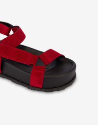 THE RESORT 2026 COLLECTION FEATURES SPORTY SUEDE SANDALS WITH GROSGRAIN JACQUARD LOGO STRAP, CALF-LINED FLATFORM BOTTOM, AND RUBBER TREAD. PRODUCT DETAILS - LOGO EMBROIDERY ON THE BACK - STRAPS WITH HOOK-AND-LOOP CLOSURE - RUBBER SOLE UPPER: 100% CALFSKIN - BOTTOM: 100% RUBBER - LINING: 50% GOATSKIN, 50% SHEEPSKIN SKU: POLMA16254I1OME0504