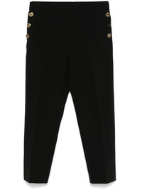 tapered tailored trousers Highlights - Black - Side button fastening - Belt loops - Pressed crease Made in Italy Composition Polyester 88%, Elastane 12%