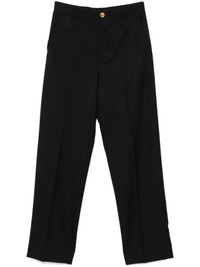 high-waist tailored trousers Highlights - Black - Virgin wool - Front button and zip fastening - Belt loops - Pressed crease - Two diagonal pockets to the sides - Two rear jetted pockets - Tapered leg Made in Italy Composition Lining: Acetate 51%, Viscose 49% Outer: Virgin Wool 100% SIZE & FIT Model measurements Height 5 ft 10 in(1.78 m) Bust/Chest 33.46 in(85 cm) Hips 36.22 in(92 cm) Waist 23.22 in(59 cm) FittingInformation Designed for a tapered fit, these trousers allow for a close fit at the waist and a loose unrestricted fit over the leg with a closer fit towards the ankle Made from a midweight non-stretch fabric