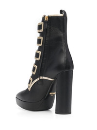 Teddy Bear button-detail leather boots black/gold-tone leather/goatskin signature Teddy Bear motif logo-embossed buttons side zip fastening pull-tab at the heel pointed toe high heel 125mm heel branded insole leather sole Made in Italy Composition Lining: Leather 100% Outer: Goat Skin 100% Sole: Leather 100%