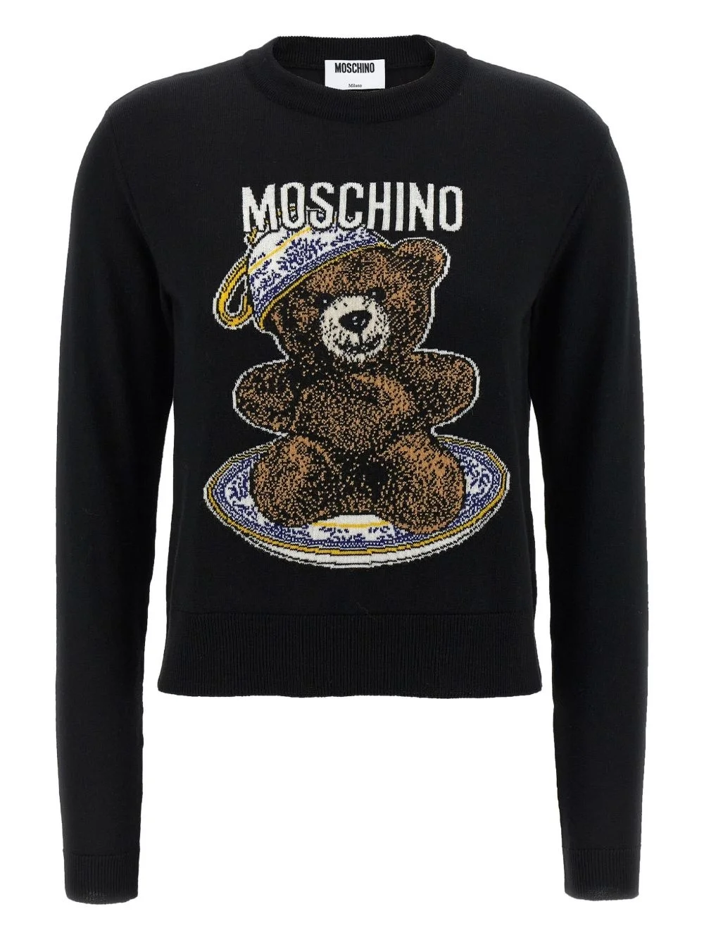 teddy bear-intarsia crew-neck sweater Highlights - Black - Crew neck - Long sleeves - Teddy bear intarsia knit - Virgin wool Made in Italy Composition Virgin Wool 100% Washing instructions Read Manufacturer Guidelines