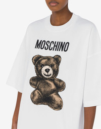 OVERSIZED COTTON INTERLOCK MINI DRESS WITH LOGO PRINT AND MOSCHINO TEDDY BEAR ON THE FRONT. OVERSIZE FIT CREW NECK SHORT SLEEVES DROPPED SHOULDERS FABRIC: 100% COTTON CODE: AEF251E 043505421001