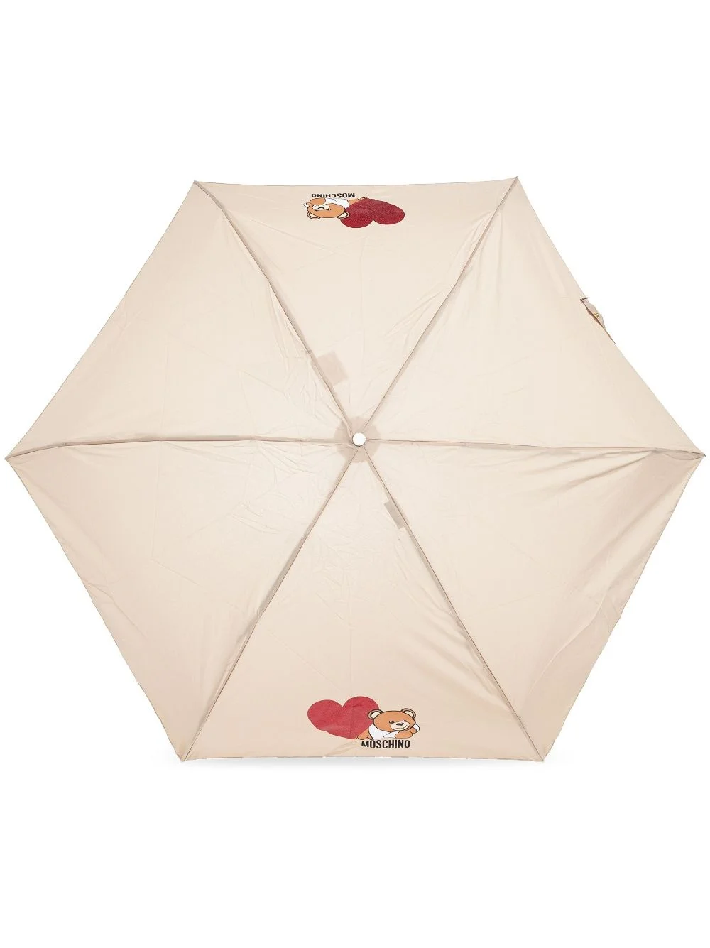teddy bear-print compact umbrella Highlights - Dark beige/multicolour - Teddy bear logo print - Six-panel construction - Wrist strap - Decorative teddy bear Imported Composition Polyester 100%