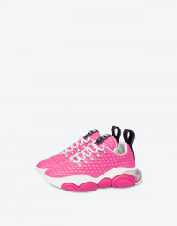 Sneakers featuring bubble-wrap-effect quilted upper, a transparent maxi-bubble on the back and the unmistakeable 100% Made in Italy sole with Moschino Teddy Bear shape. - Wide Fit - Transparent maxi bubble with logo on the back - Memory foam sole - Logo label on tongue - Front lacing - Laces with branded rubber aglets - Transparent hooks - Branded pull-tab to make them easy-on - Textured shell sole with bubble-wrap effect Lining : 100% Polyester Upper : 65% Polyurethane, 30% Polyester, 5% Viscose Bottom : 100% Rubber Code: MA15553G0FMAG615 Fit - Wide Fit - Heel Height : 3 cm