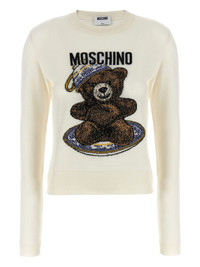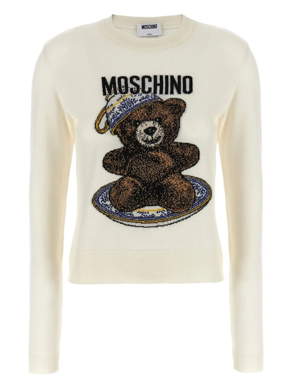 Teddy intarsia crew neck sweater Highlights - Off-white - Crew neck - Teddy bear intarsia - Long sleeves - Ribbed cuffs - Ribbed hem Made in Italy Composition Virgin Wool 100% Washing instructions Read Manufacturer Guidelines