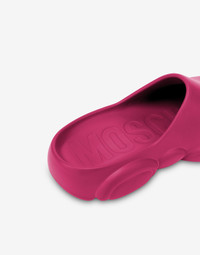 Extremely light mules in 100% rubber with a Moschino Teddy Bear-shaped sole. - Logo on outer side - Maxi-logo on the insole - Rubber Teddy sole Bottom:100% Ethylene Vinyl Acetate Upper:100% Ethylene Vinyl Acetate Code: POLMA10903G1FM29604 FIT - Heel Height : 3 cm