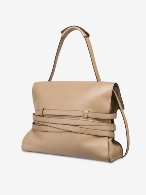 NAPPA BAG, IN MEDIUM SIZE AND WITH A DELIBERATELY SOFT CONSTRUCTION, MAKING IT SURPRISINGLY LIGHT. A DISTINCTIVE FEATURE IS THE FULLY DETACHABLE DECORATIVE BELT THAT WRAPS AROUND THE BAG'S BODY. THE HANDLE HAS MATCHING LEATHER PROTECTION, AND A PRACTICAL REAR POCKET ALLOWS YOU TO KEEP ESSENTIAL ITEMS WITHIN REACH. PRODUCT DETAILS - MEDIUM SIZE - EMBOSSED LOGO ON THE FLAP - HANDLE PROTECTOR WITH SNAP BUTTONS - BACK POCKET WITH MAGNET - LINED INTERIOR WITH ZIP POCKET AND SMALL APPLIED POCKET - THE LEATHERS USED ARE ALL OF THE HIGHEST QUALITY, NATURALLY TANNED AND HAND-FINISHED. ANY VEINS OR SMALL IMPERFECTIONS ARE A MARK OF THEIR UNIQUENESS. FOR LEATHER CLEANING, WE SUGGEST USING ONLY NATURAL-BASED PRODUCTS. UPPER: 100% SHEEPSKIN - LINING: 100% COTTON SKU: POLMC4162PP0MOA0000