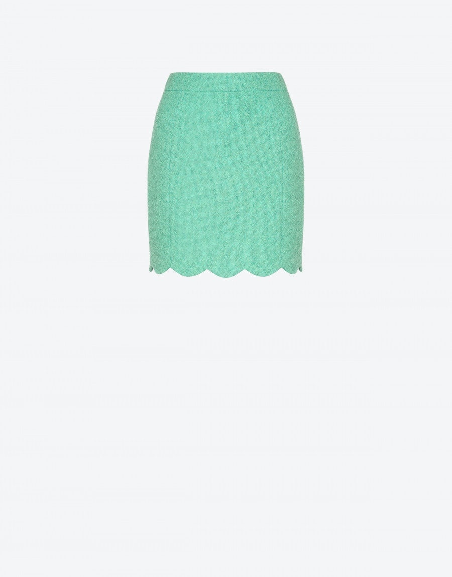 Cotton and nylon tweed mini skirt with scalloped hem. - Slim fit - High waist - Hidden side zip closure - Lined Fabric : 87% Cotton, 13% Polyamide Code: 221D A010404110335 Fit - Slim fit - Model size : 40 - Model height : 178 cm - Model bust : 82 cm - Model waist : 60 cm - Model Hips : 88 cm