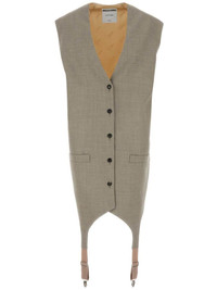 V-neck waistcoat Highlights - Light beige - Front button fastening - Front clip fastening - Two side welt pockets - Adjustable strap to the rear Made in Italy Composition Virgin Wool 100%, Viscose 100%