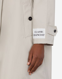 Cotton and nylon canvas trench coat with a waxed effect and a Classic Raincoat patch embroidered on the sleeve hem. - Regular fit - Two buttoned side pockets - Buttoned sleeve ends - Front button fastening - Rear slit Fabric:56% Cotton, 44% Polyamide Code: AEF241D 060104180515 FIT - Regular fit - Model bust size : 82 - Model height : 1.78 cm - Model Hips : 88 cm - Model size : 40 - Model waist : 60 cm