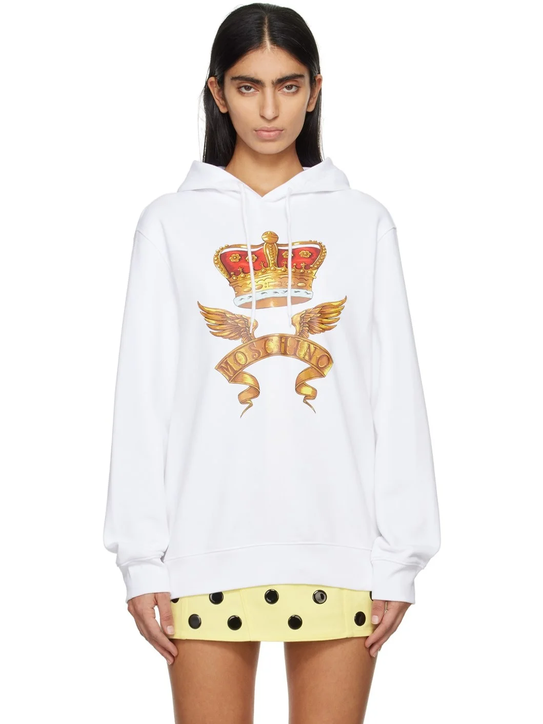 French terry hoodie. · Drawstring at hood · Logo graphic printed at front · Rib knit hem and cuffs Supplier color: Fantasy white