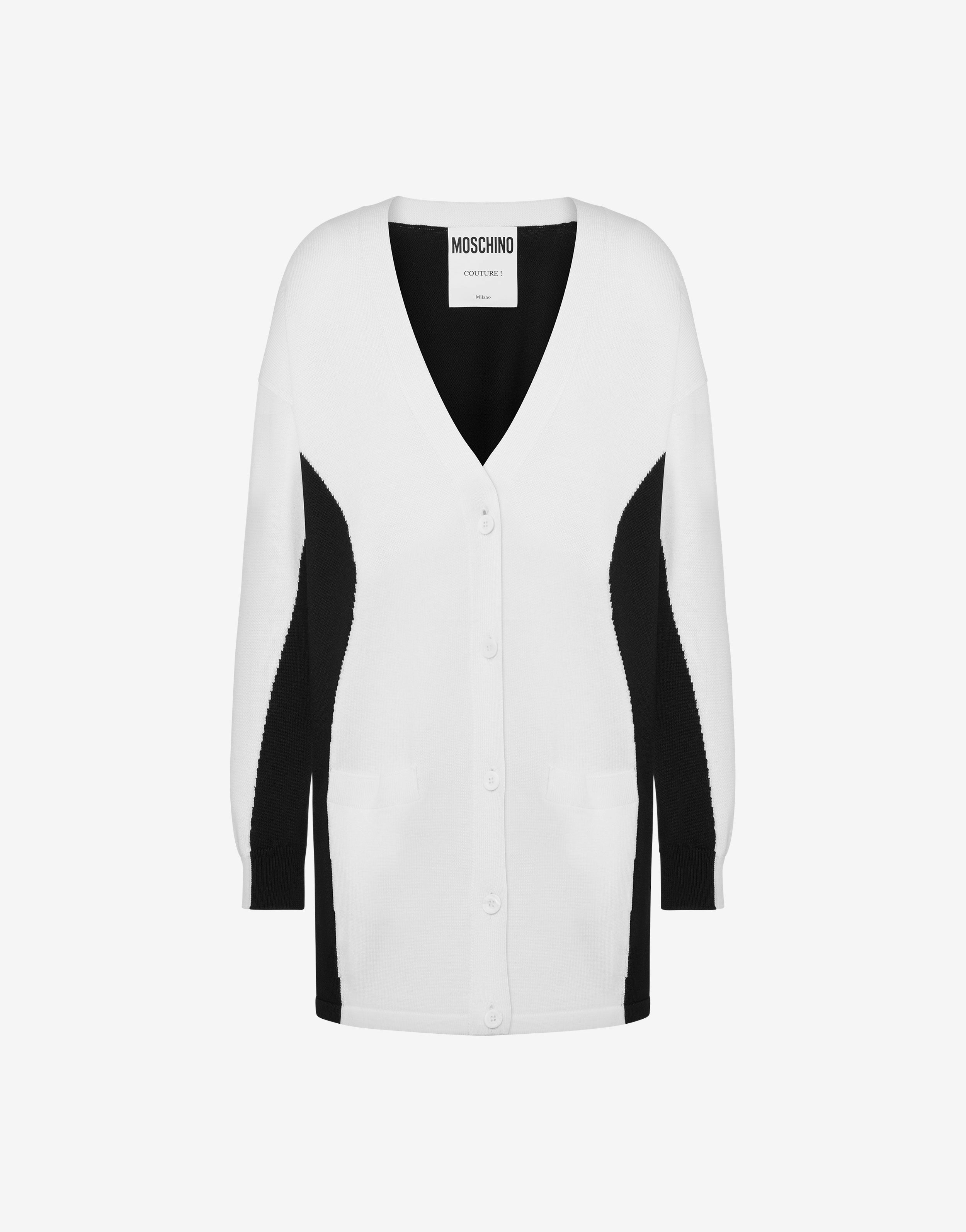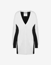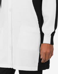 BLACK AND WHITE EXTRAFINE MERINO WOOL CARDIGAN WITH V-NECK AND POCKETS ON THE FRONT. LOOSE FIT TWO FRONT POCKETS DROPPED SHOULDERS FRONT BUTTON FASTENING FABRIC: 100% PURE WOOL CODE: AEF242E 090655021001